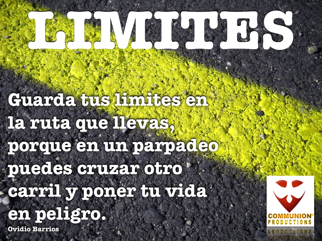 Un fracaso, una derrota, una pérdida, una caída; no significa necesariamente que debemos detenernos y darnos por vencidos. La vida nos enseña á levantarnos y sobreponernos ante cualquier situación, por muy negativas que parezcan. Somos seres de carácter, de fuerza, y vigor ante cualquier adversidad. Hemos comprobado que si nos proponemos y nos exponemos á los retos mas difíciles de la vida, lo podemos lograr. Tenemos agallas de campeones, y somos seres de iniciativas y de promoción. Sin embargo, los limites están ahí. Por lo tanto, eso no significa que seamos imprudentes. Además, los limites merecen nuestro propio respecto, no sea que traspasándolos estemos en peligro de muerte. Guarda tus limites en la ruta que llevas, porque en un parpadeo puedes cruzar otro carril y poner tu vida en peligro.
