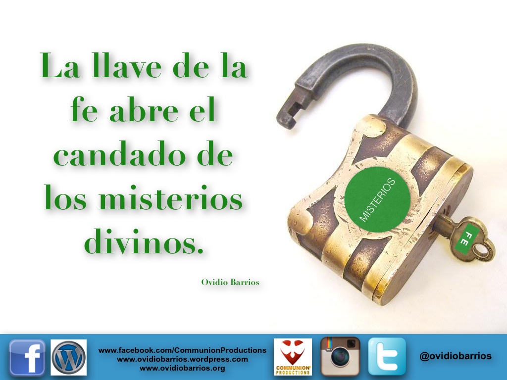 Un escritor del Nuevo Testamento lo pone de esta manera: «Es, pues, la fe la certeza de lo que se espera, la convicción de lo que no se ve.» -Hebreos 11:1. — La fe es la clave o el código secreto para entender a Dios y con él comprender todos sus misterios. Probablemente encontremos obstáculos en el camino, y nuestra razón nos traicione; a pesar de todo, la fe estará ahí para valorar lo que el corazón puede recibir de parte de Dios.