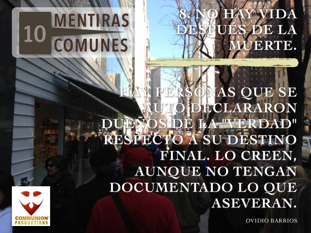 Hay personas que se auto declararon dueños de la «verdad» respecto a su destino final. Lo creen, aunque no tengan documentado lo que aseveran. Lo confiesan, aunque por dentro hay zozobra e ignorancia de la verdad real. Ellos dicen: «Esta vida es todo, después de muertos todo se acaba.» Ellos piensan que somos efímeros y que finalmente seremos exterminados. Para ellos no hay diferencia entre alma, espíritu y cuerpo. El hombre solo vive una vez, y se acabó. A pesar de que algunos piensen así, hay otros que tienen sus dudas, como estas: — ¿Qué sucede exactamente después de la muerte? — ¿Será que dejamos de existir al morir? — ¿Es la vida una oportunidad para salir y volver a entrar a la tierra a fin de alcanzar una reencarnacion? — ¿Al morir van todos al mismo lugar, o hay diferentes lugares? — ¿Hay realmente un cielo y un infierno? — ¡Dios mío, qué preguntas! — Y pareciera que no hay respuesta alguna a las que cuestiones universales que existen.