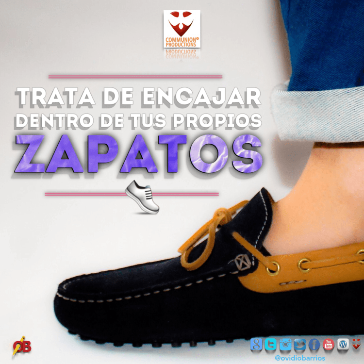 «Trata de encajar dentro de tus propios zapatos«, para la realidad que en estos momentos es parte de tu caminar. Se trata de tu vida, de tu existencia, de tu realidad; y eso es lo que importa, y la cual, debes superar con valentía. De eso se trata, de caminar hacia el frente sin temores, recorriendo la vida con los «zapatos» de tu realidad y vivencia. Si el camino es escabroso y largo, será más seguro su recorrido con tu propio calzado. No pruebes otras medidas, colores y diseños de calzado que no favorezcan a tu destino. Vive tu vida y tu realidad con valor.