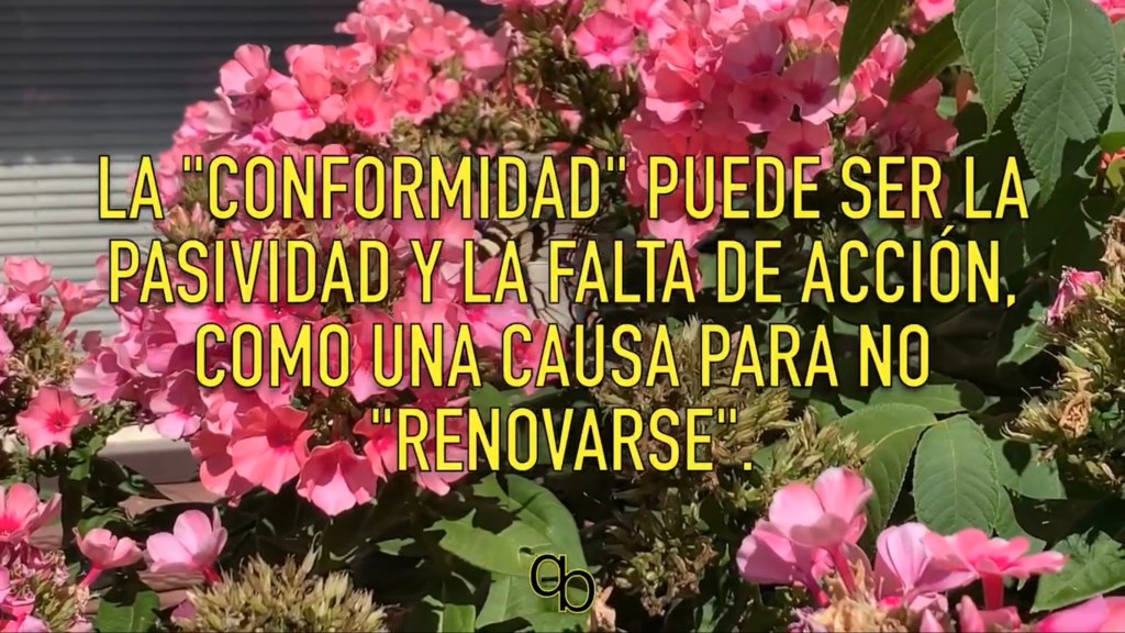 «Conformarse», es una meta justa, para cada persona, de acuerdo a la influencia que lo domine. A veces «conformarse», parece que no es lo más indicado; sobre todo, cuando hay un potencial mayor de desarrollo en una persona. La «conformidad» puede ser la pasividad y la falta de acción, como una causa para no «renovarse». – Para «conformarse», hay cambios sustanciales que suceden en un proceso continuo de tiempo y circunstancias. Sin embargo, en la Biblia hay un propósito espiritual mayor y más elevado que se llama «renovación». Por lo tanto, el primer proceso para llegar a la «renovación» es la «conformación» según el modelo de Dios.