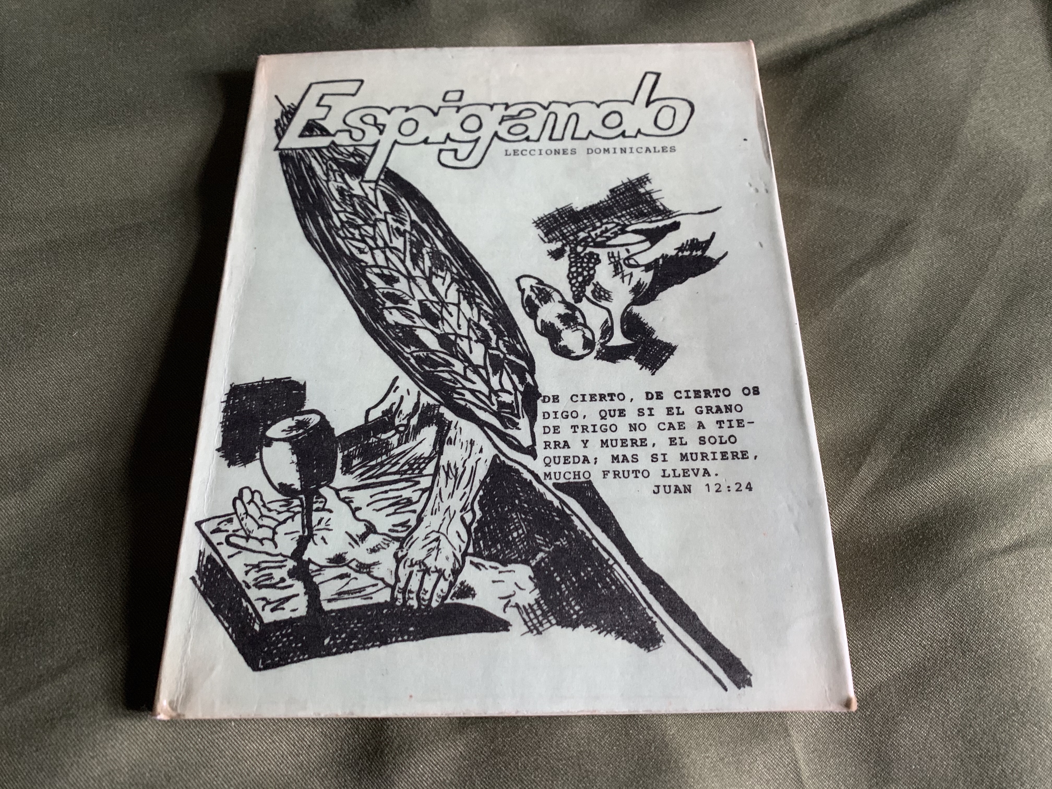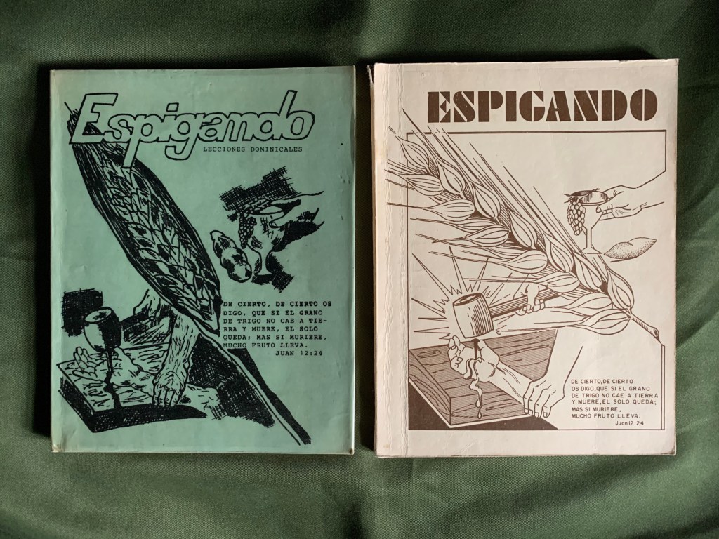 Primero, sugerí tres nombres, ESPIGA, ESPIGAR y ESPIGANDO. El Dr. Ríos le pareció bien el tercero y así quedó establecido. La coordinación de los temas, el maestro, secretarias, y redactores; fue un asunto más delicado, a cargo del Pastor adjunto de la iglesia Central. A mi me correspondió la coordinación del proceso de impresión, compaginación, encuadernación y diseño hecho a mano, de los primeros tres libros Espigandos.
