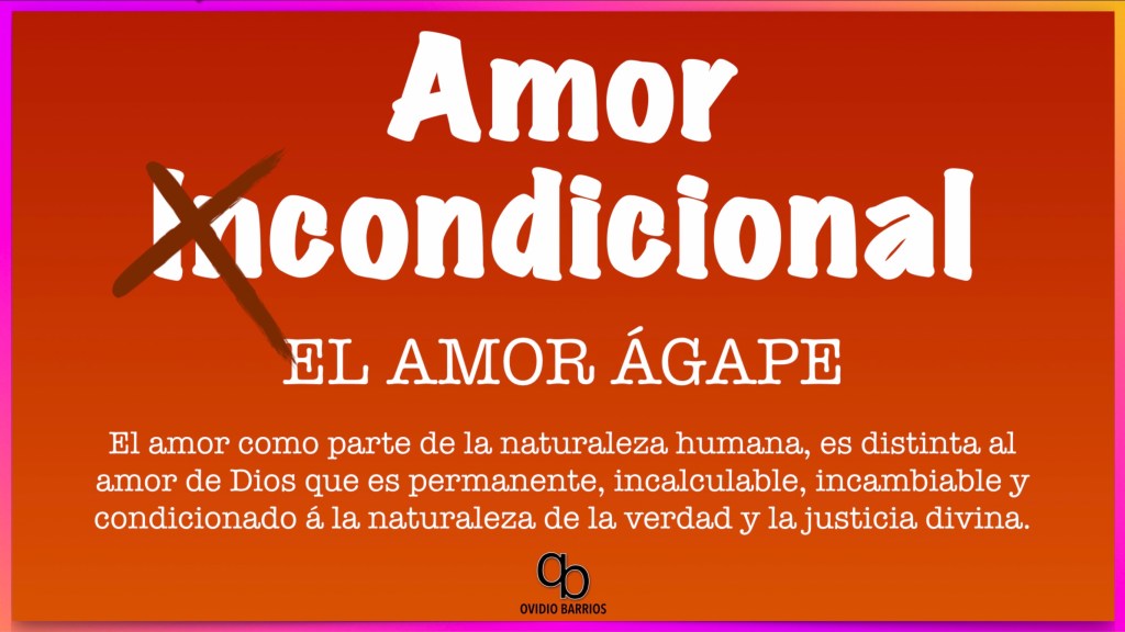 El amor como parte de la naturaleza humana, es distinta al amor de Dios que es permanente, incalculable, incambiable y condicionado á la naturaleza de la verdad y la justicia divina. El amor divino es conocido como «ágape», por la translación de la palabra griega «ágape» (ἀγάπη) al castellano, cuyo concepto es conocido como el más amplio y extenso en la Biblia. La interpretación del vocablo «ágape» es el afecto, la buena voluntad, la benevolencia y la fraternidad en el amor divino. «Ágape» también tiene la característica de una celebración festiva de fraternidad y armonía coloquial entre los seres humanos que son motivados por la presencia de Dios. El amor ó el «ágape divino», es comúnmente conocido como «caridad». Por consiguiente, la caridad es la virtud que impulsa sentimentalmente á las personas para inclinarse á la ayuda de los demás. El amor divino es la fuerza que mueve al ser humano á la búsqueda del bienestar de los demás, sin importar el costo personal.